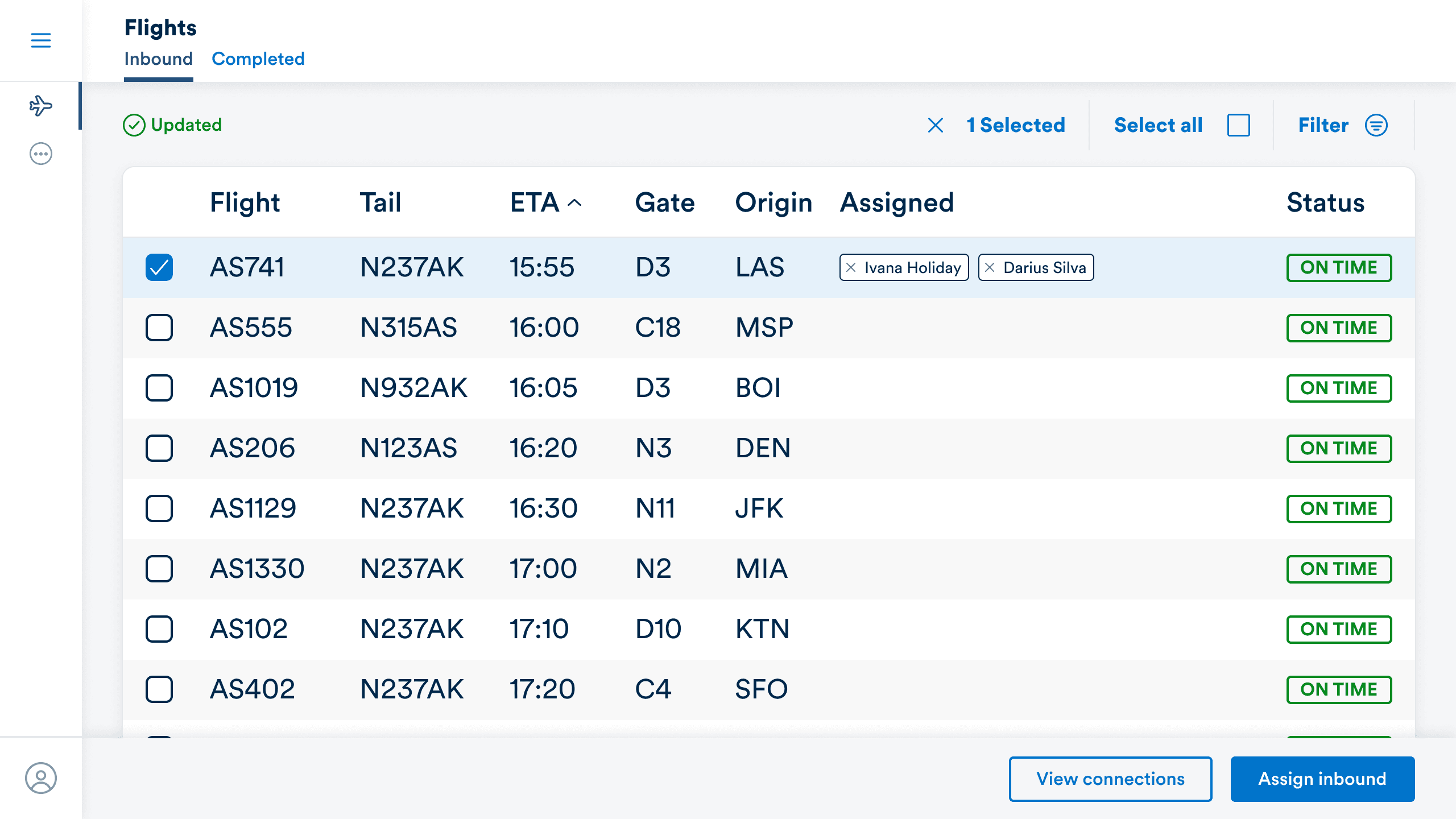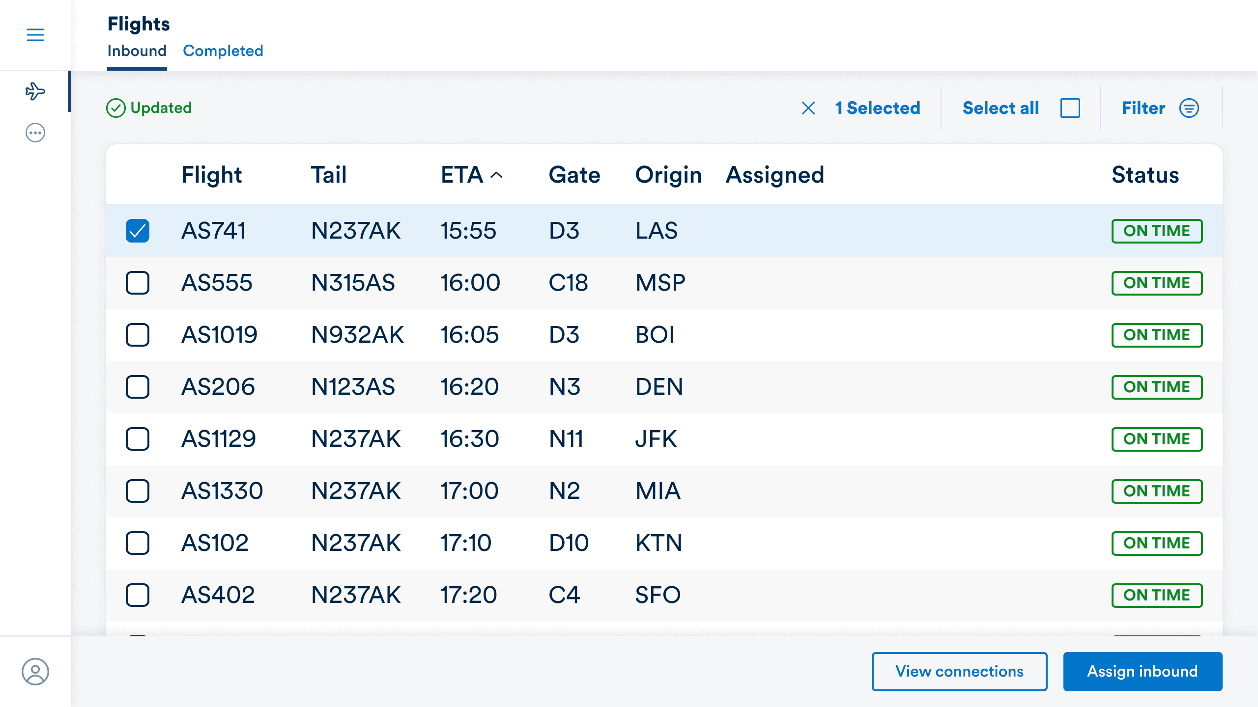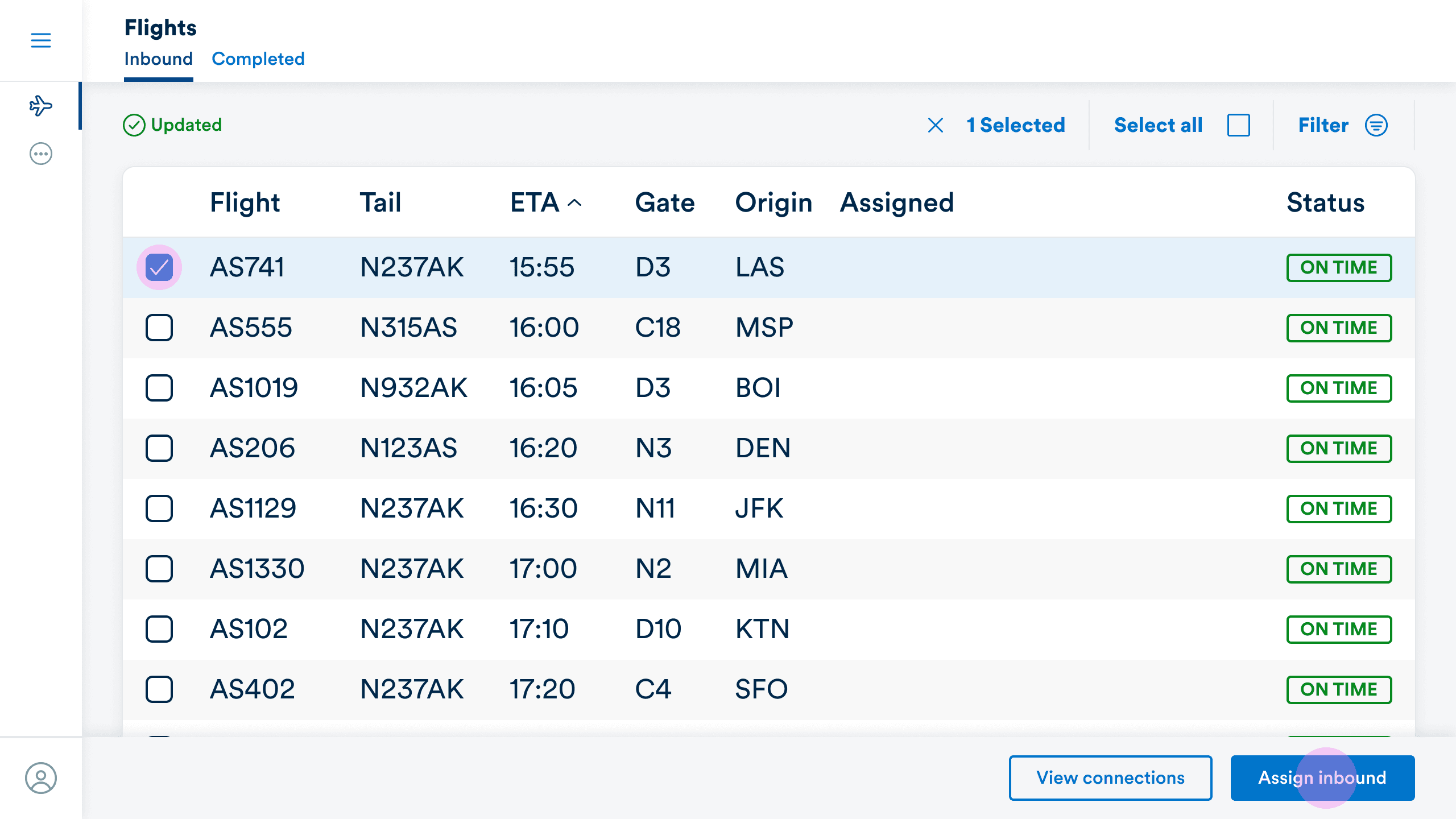 Inbound flight assignment made