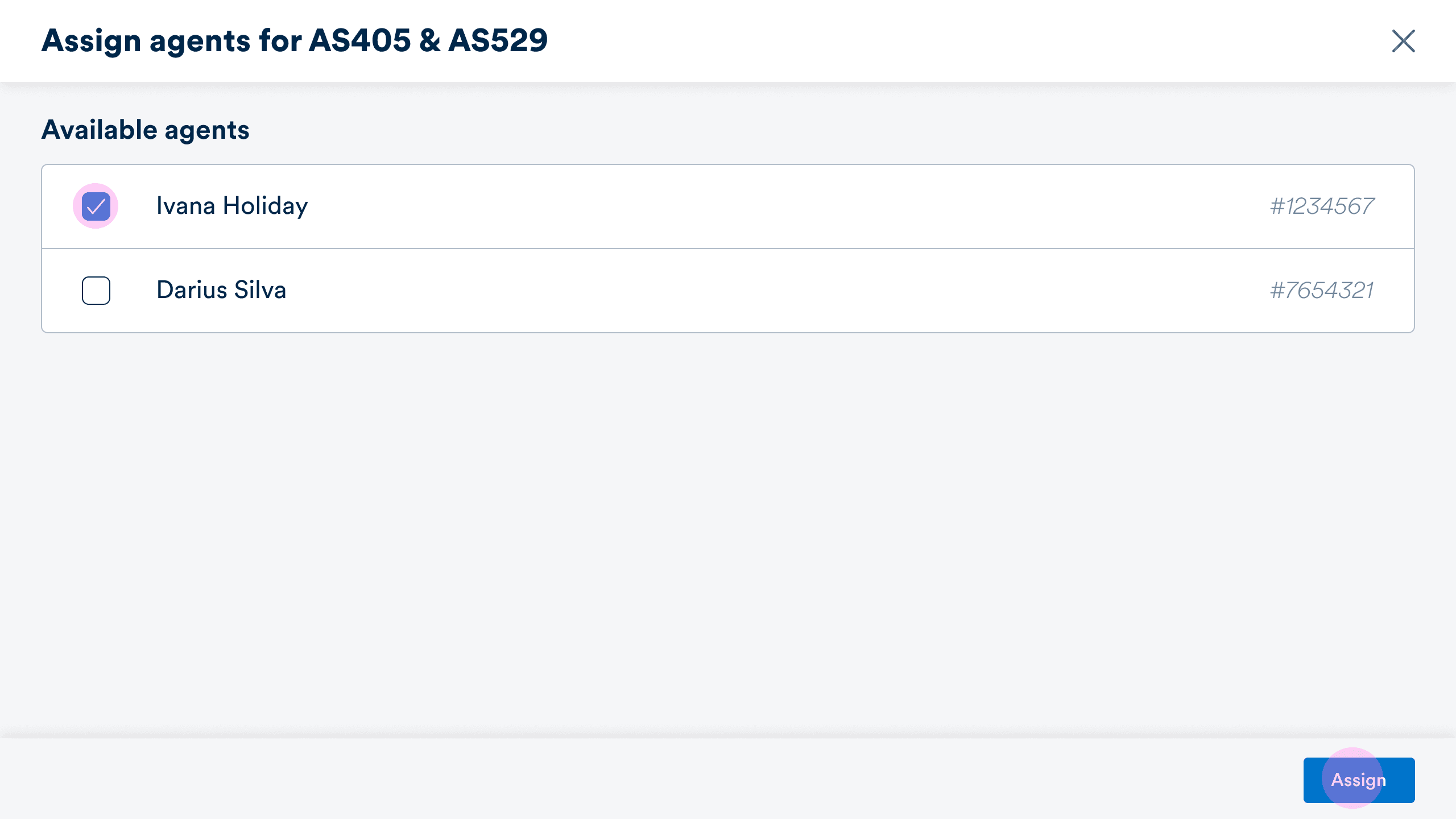 Agent selected