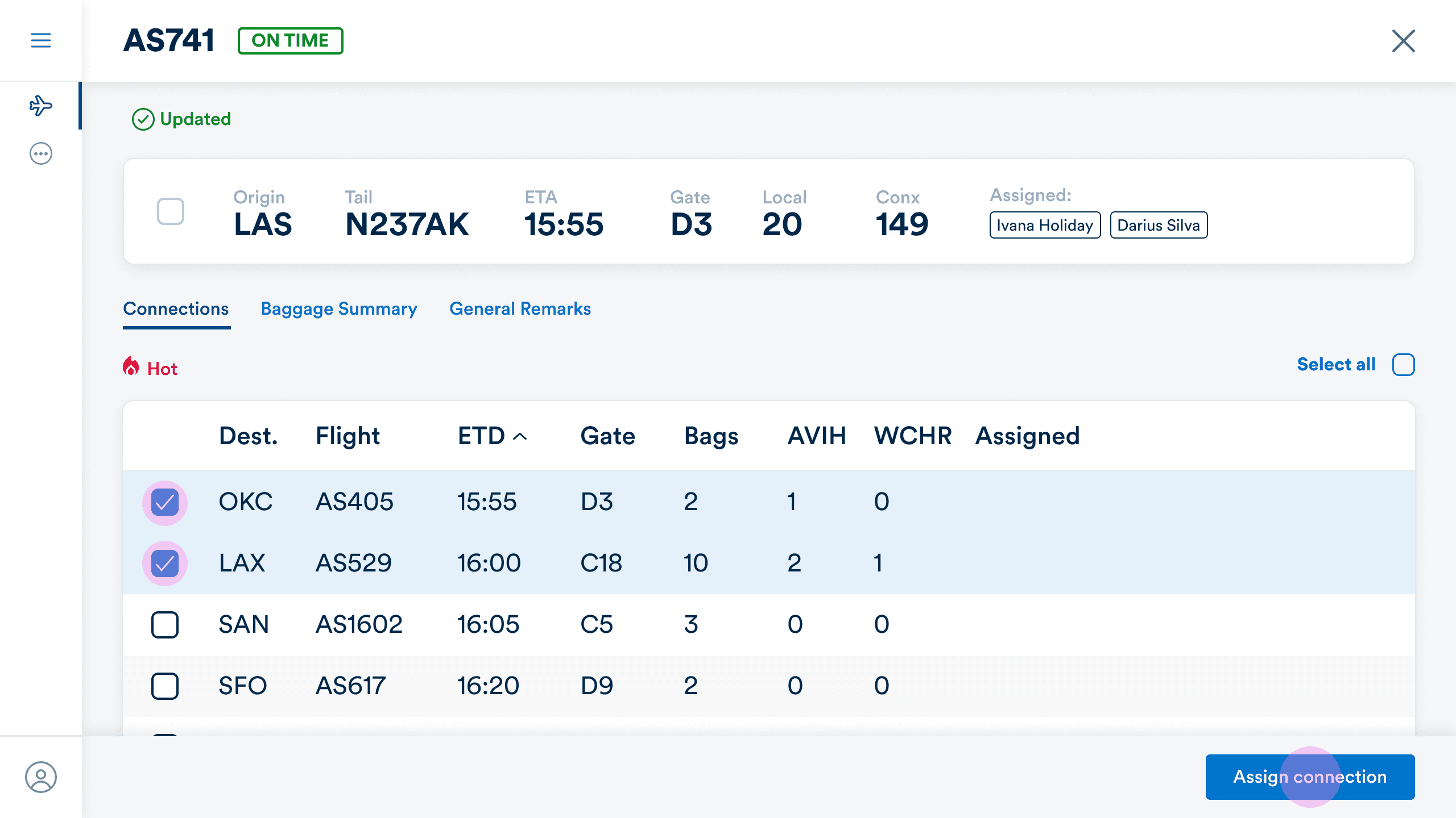 An overview of what flights are assigned and what flights aren’t assigned